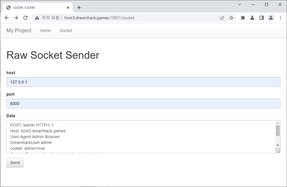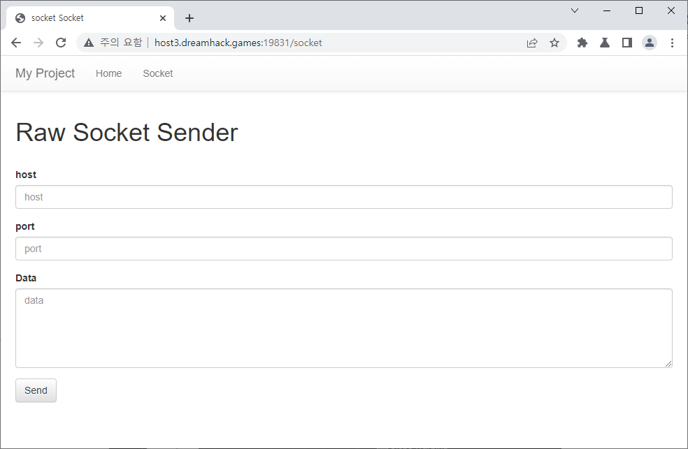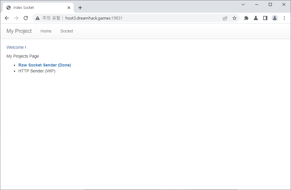 이런 사이트가 나타납니다. Raw Socket Sender에서 플래그를 획득해야 하니 들어가 봅니다.