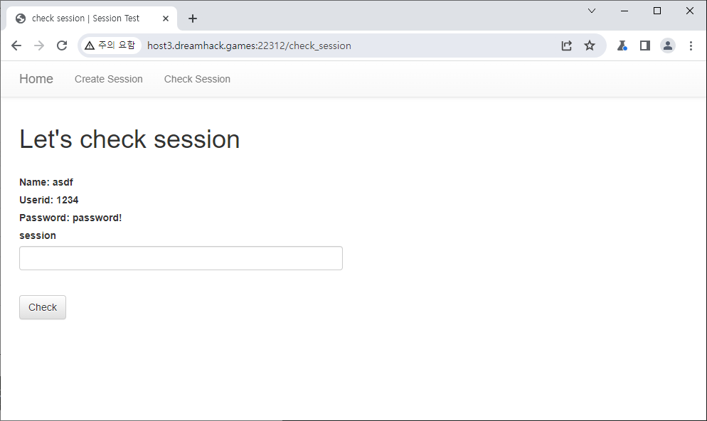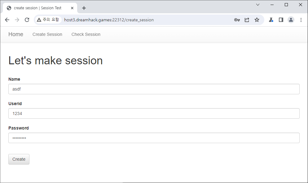 create_session 페이지는 name, userid, password를 post로 받아서 dict로 만들고 그걸 base64로 인코딩해서 보여주는듯 합니다.