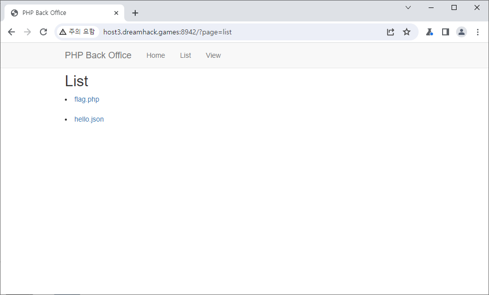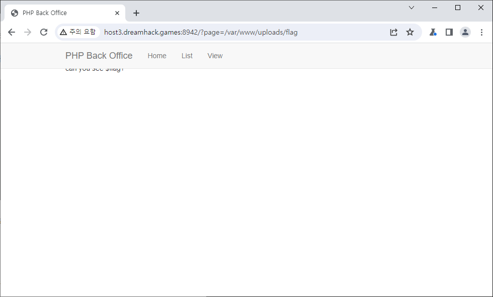 List 페이지에서 flag.php에 들어가 내용을 보도록 하겠습니다.