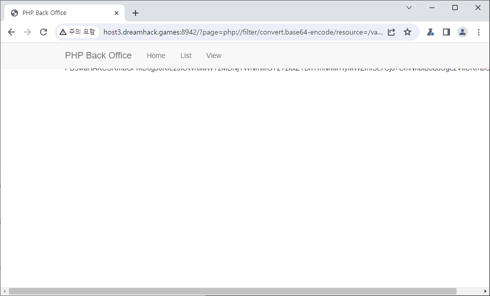 이 wrapper를 사용하면 파일 내용을 base64로 인코딩하여 가져올 수 있습니다. 이렇게 가져오면 <?php ?>가 인식되지 않고 모든 소스를 읽어들일 수 있습니다.