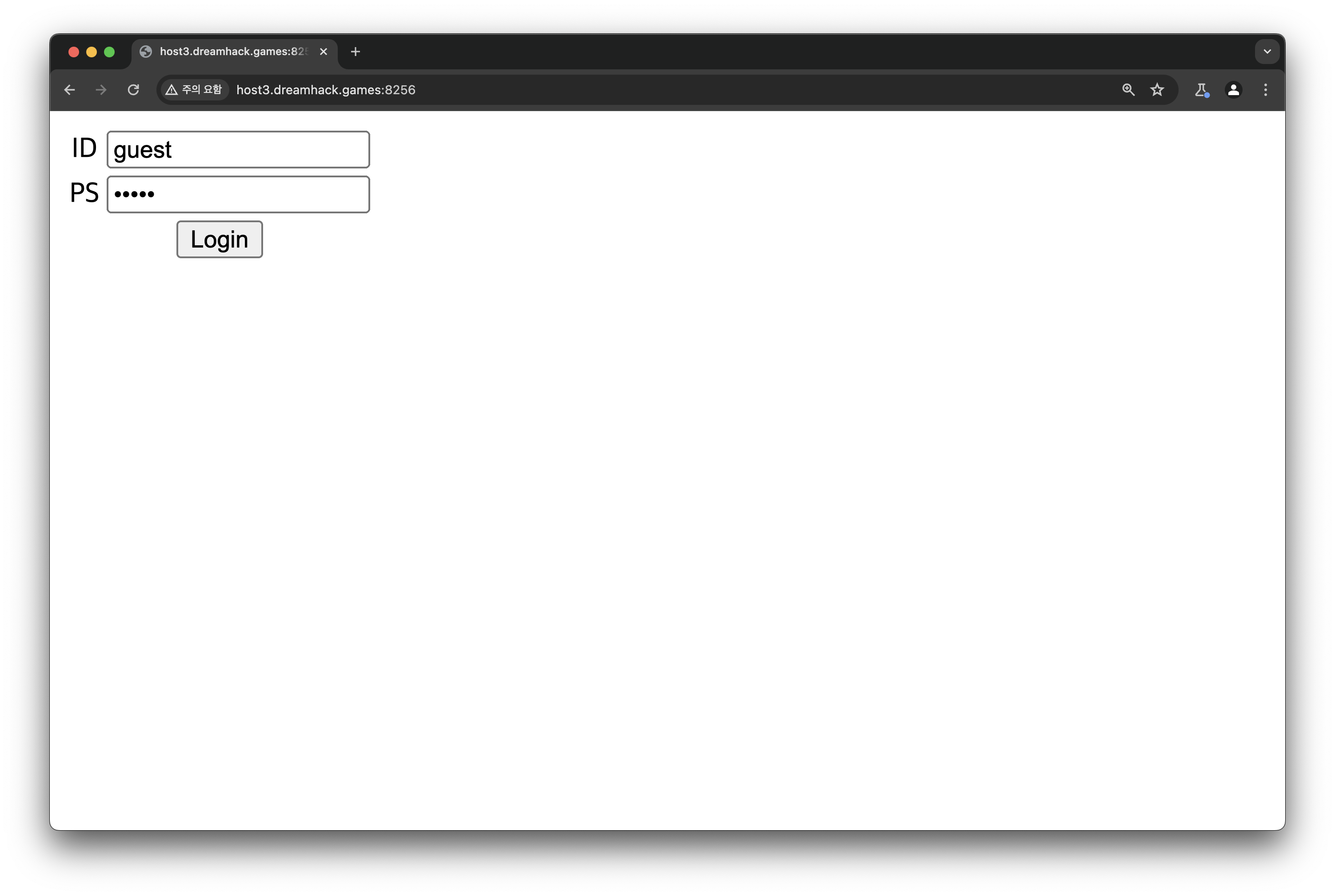 처음에 들어가면 다른건 아무것도 없고 로그인 창이 하나 있습니다. 일단 입력되어있는 값을 그대로 두고 로그인을 해보면