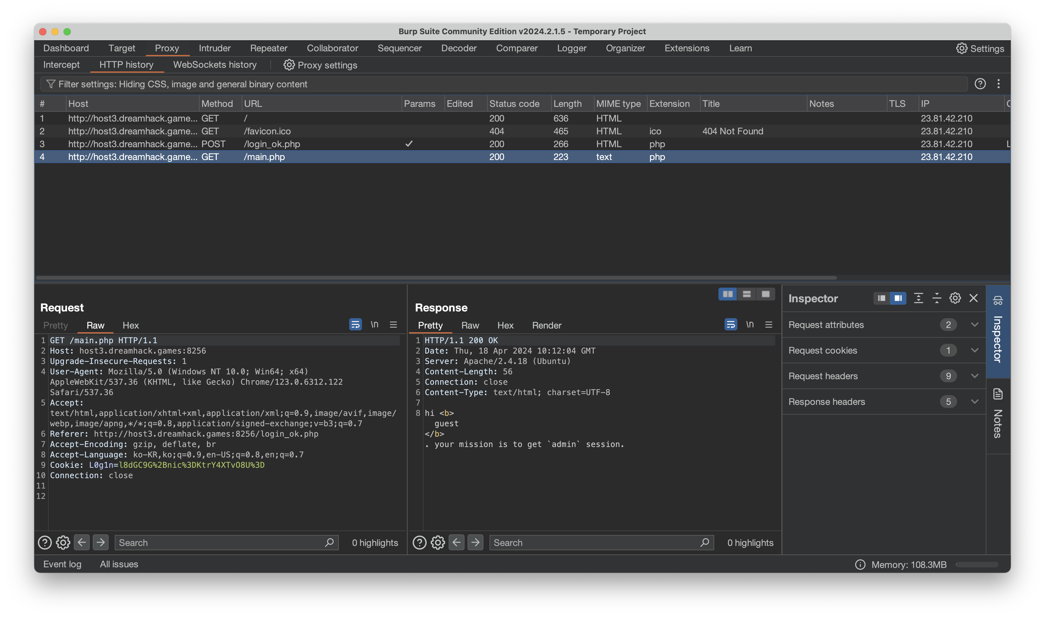 guest로 로그인이 되긴 하는데 admin 세션을 얻는게 미션이라고 합니다. 주어진 코드도 없고 더 알아낼 수 있는게 없으니 일단 웹 요청을 어떻게 보냈는지 확인해봅시다.