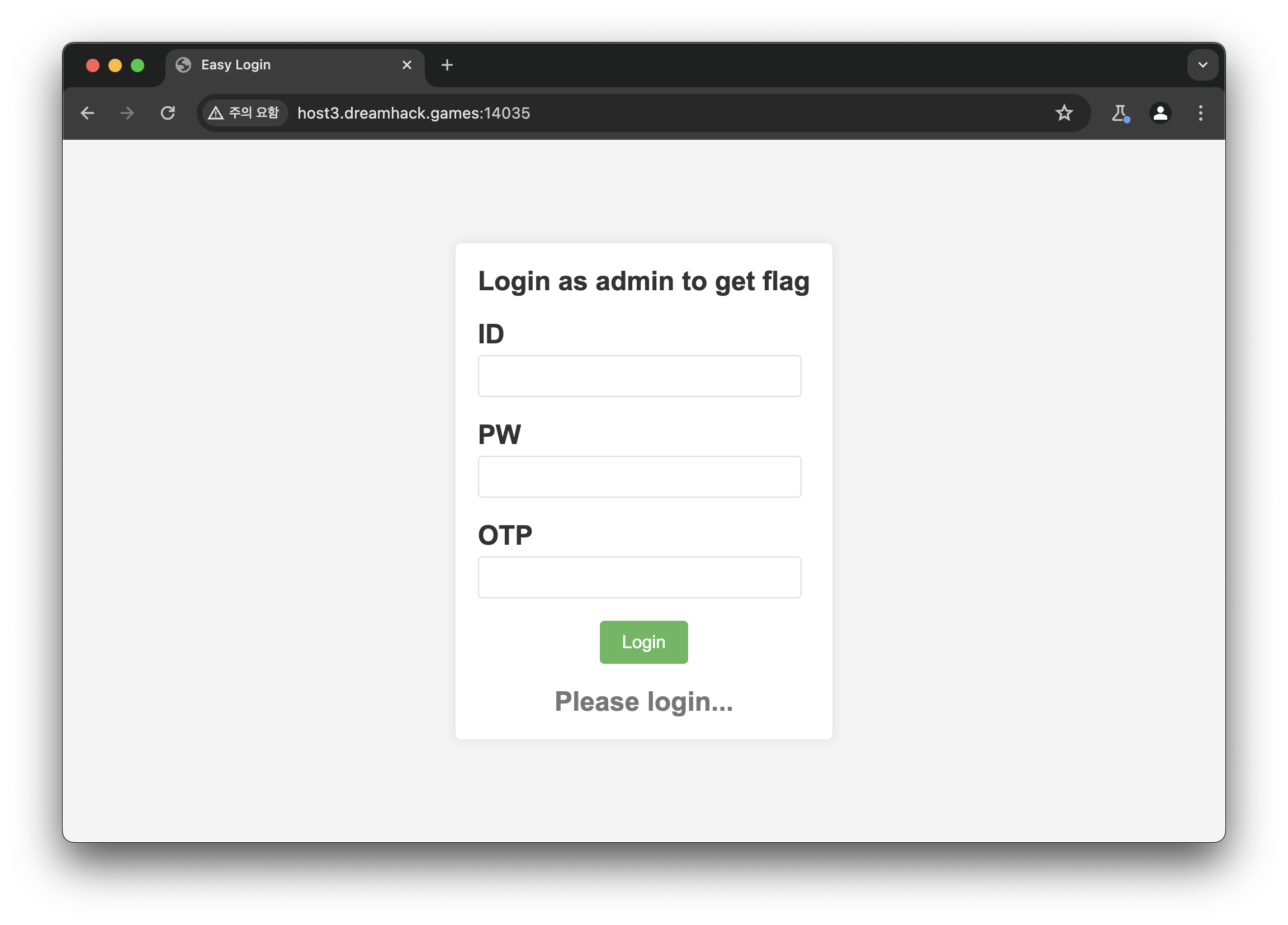 이런 로그인 창이 하나 있습니다. 계정도 모르고 otp도 알 수 없으니 일단 코드 부터 확인해 봅시다.