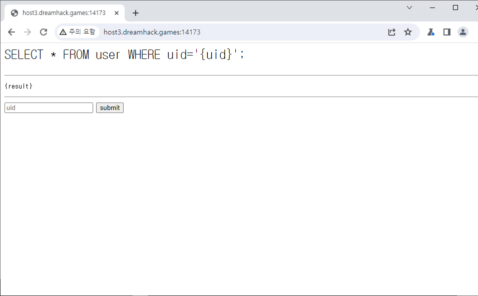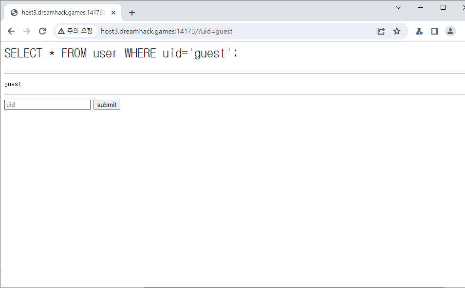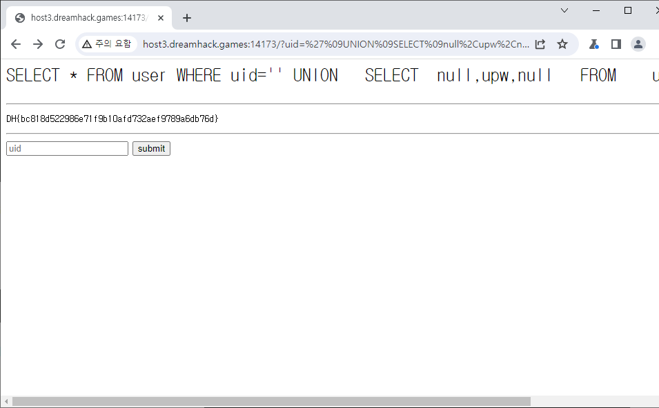 INSERT INTO user(uid, upw) values('admin', 'DH{**FLAG**}');